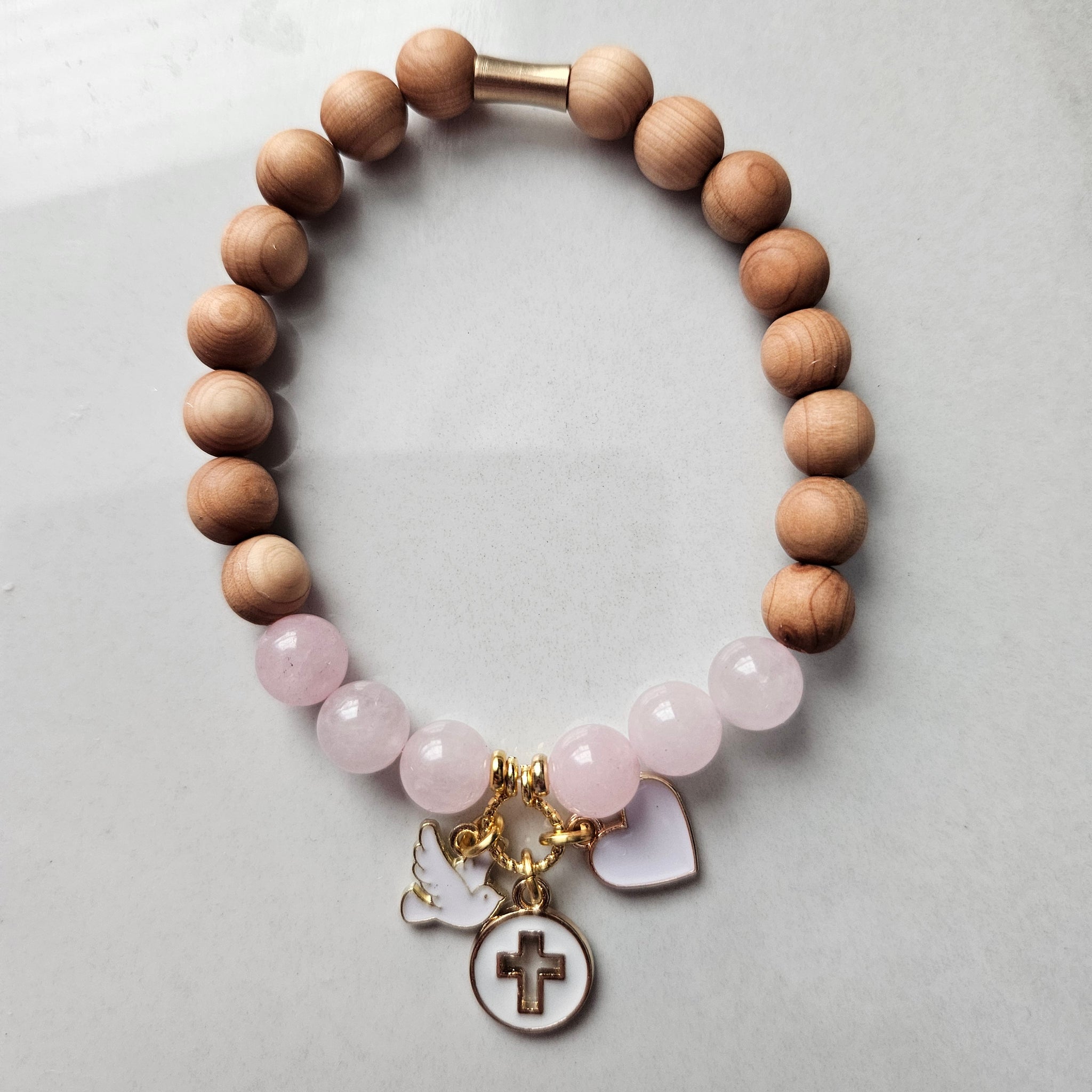 This Faith, Hope, and Love Charm Diffuser Bracelet is one of my favorite all occasion pieces. The wood beads act as a diffuser for essential oils and each bracelet comes with a vial of Rainbow Row Essential Oil blend. Simply add a few drops of EO blend (or your favorite EO) to the wood beads and it will absorb in and diffuse all day!